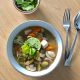 Add the ground spices, fresh coriander and lime. Sprinkle over the quinoa flour and mix thoroughly.