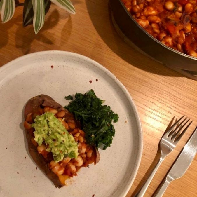 Serve with rice or sweet potato. I had mine with some homemade guac and a side of kale too. Yum!
