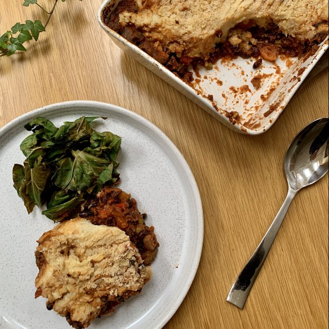 Sprinkle over the nutritional yeast and bake in the oven for 40 - 45 minutes until piping hot.