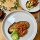 Add the olive oil to a pan and crush over the garlic, before adding the chilli, ginger and onions. Pan fry until golden.